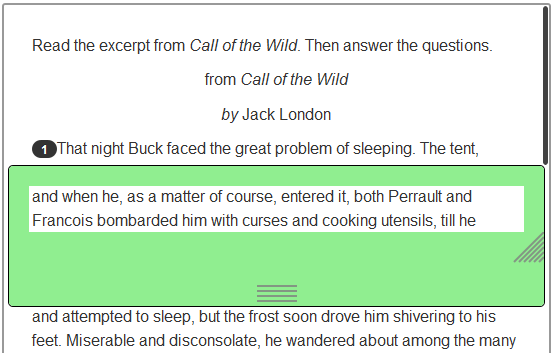 | Line Reader Mask | Allows students to use a line reader to help students focus on selected text by blocking surrounding text. The line reader can be adjusted to focus on a single line, multiple lines, or just a few words. Available in PNP and Test Settings. If the line reader is enabled in Test Settings, it will be available on a test regardless of a student's PNP.