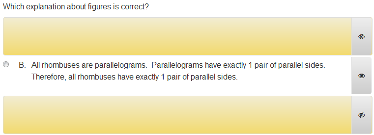 | Answer Masking | Allows a student to hide or show answer choices to help them eliminate incorrect answers. Student PNP only.